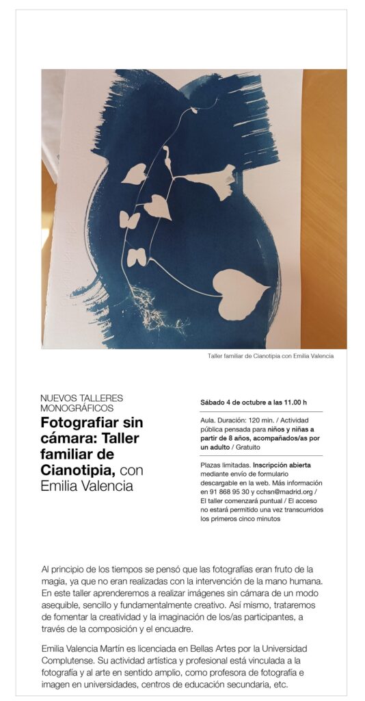Fotografiar sin cámara: Taller familiar de Cianotipia, con Emilia Valencia