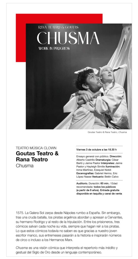 Teatro-Clown: Goutas – TEATRO: Fuenteovejuna – Taller familiar de Cianotipia – Dados y Letras
