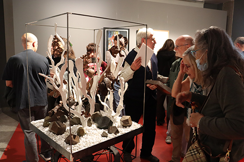 Las propuestas nos llevan por los caminos de la figuración, de la abstracción, de la sugerencia en diferentes soportes: papel, cerámica, carta, metal… con cuadros, fotografías, esculturas que en su diversidad muestra un mismo anhelo creador.