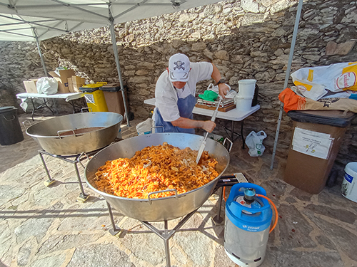 Además de las tradicionales migas serranas, se pudo degustar las famosas “ostias” de La Hiruela, un dulce tradicional de este pueblo de la Sierra de Madrid, preparado con rodajas de manzana rebozadas en harina y huevo, fritas y servidas con azúcar y naranja.