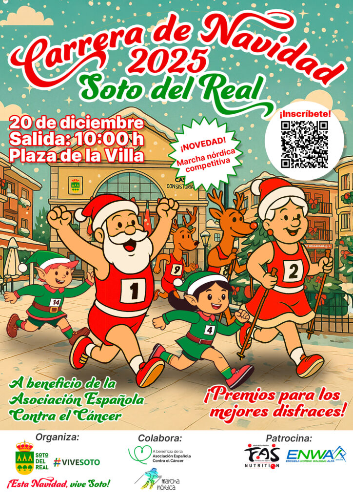 El Ayuntamiento de Soto del Real invita a vecinos y vecinas a disfrutar de una jornada deportiva, festiva y solidaria el próximo 20 de diciembre, con recorridos para todas las edades y un ambiente lleno de espíritu navideño.