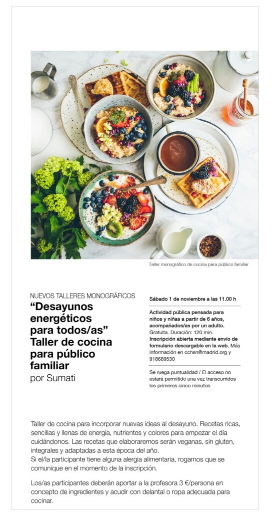 Inauguración – Encuentro con artistas: sábado 18 de octubre a las 18.00 h Comida comunitaria de participantes: sábado 18 de octubre a las 14.30 h Visitas guiadas: sábado 1 noviembre y 15 noviembre a las 18.00 h Sala de exposiciones y Espacio expositivo del vestíbulo, del 19 de octubre al 28 de noviembre Clausura – evaluación: sábado 29 de noviembre a las 11.00 h