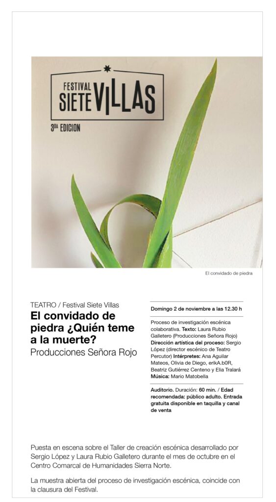 TEATRO: Las Sinsombrero –SUMA FLAMENCA 2025: ROBERTO LORENTE Barrio de la alegríaANDREA SALCEDO: Serendipia – XIII ENCUENTRO DE ARTISTAS PLÁSTICOS SIERRA NORTE