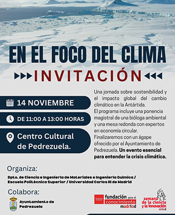 Con motivo de la Semana de la Ciencia, la Escuela Politécnica Superior de la Universidad Carlos III de Madrid (UC3M), en colaboración con el Ayuntamiento de Pedrezuela, organiza una jornada titulada “En el foco del clima: la Antártida y el impacto global del cambio climático”.