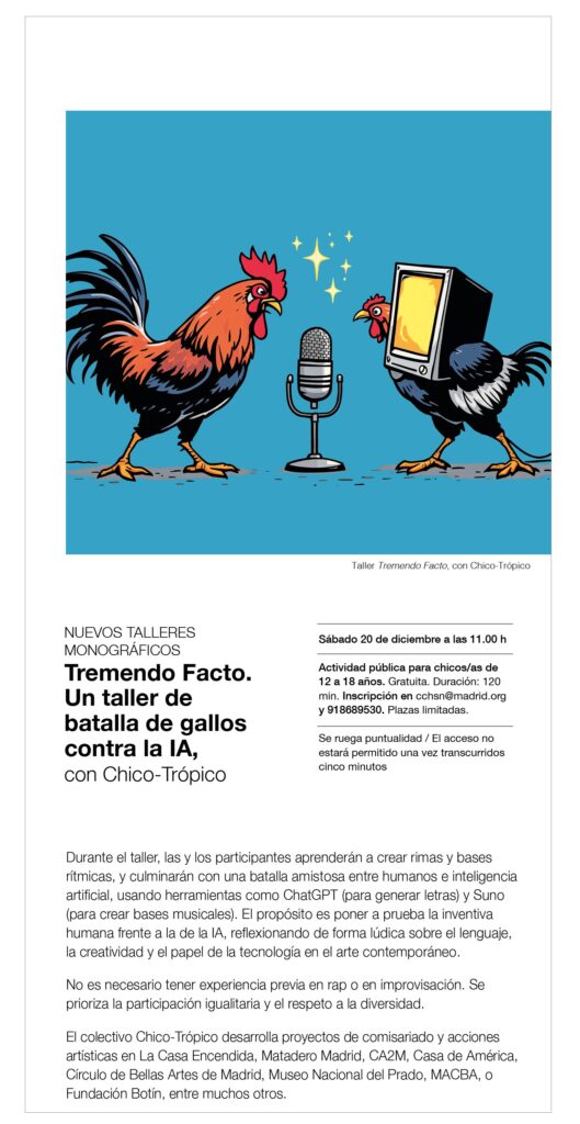 Una actividad pública pensada para niños y niñas a partir de 6 años, acompañados/as por un adulto. Gratuita. Necesaria inscripción a partir del 25 de noviembre. Plazas limitadas.