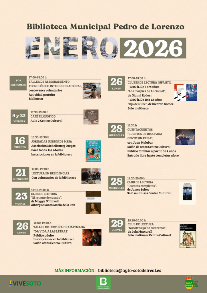 MÁS INFORMACIÓN: biblioteca@ayto-sotodelreal.es