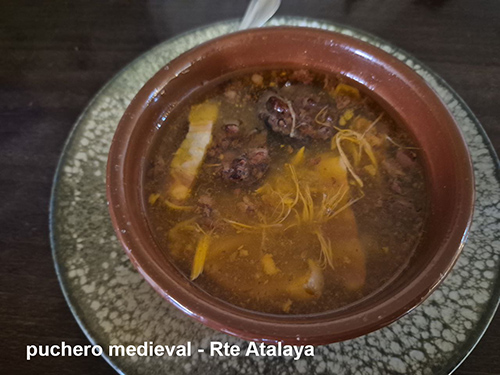 - Atalaya traslada al comensal a un imaginario medieval con elaboraciones como el escudo del Atalaya o un reconfortante puchero medieval.