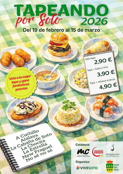 Más información: https://www.ayto-sotodelreal.es/tapeando-por-soto-26/