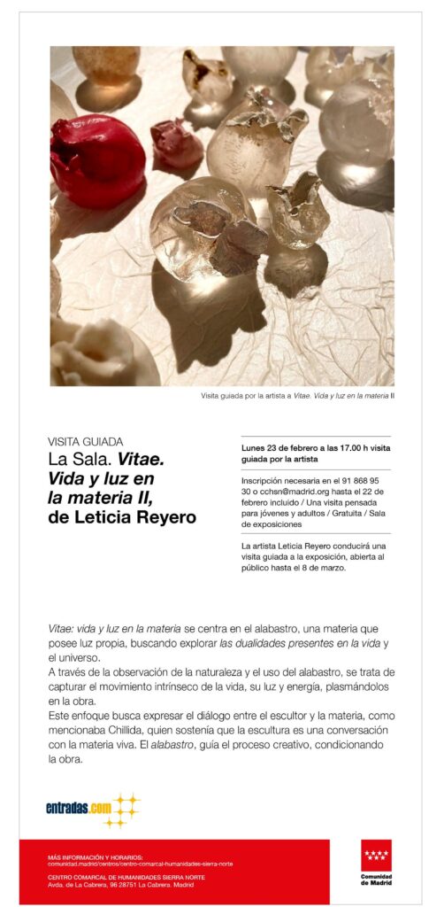 La Sala: Vitae. Vida y luz en la materia, de Leticia Reyero Vitae: vida y luz en la materia, es un proyecto artístico itinerante y en expansión, que se inició con una exposición en Traductores del Viento en Bustarviejo (Madrid) y que recorrerá distintas salas y museos del país.