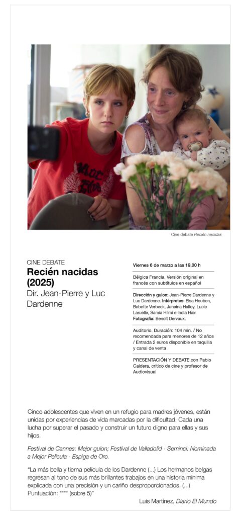 RECIÉN NACIDAS Bélgica Francia (2025). 104 min. Versión original en francés con subtítulos en español. No recomendada para menores de 12 años.