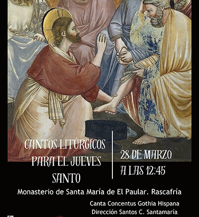 Próxima la Semana Santa, la Comunidad Benedictina y la Asociación de Amigos de El Paular, nos invitan a adentrarnos en la liturgia de estos días tan importantes del Calendario Litúrgico, con un Concierto que nos ofrecerá el Grupo Coral CONCENTUS GOTHIA HISPANA, dirigido por el socio de la Asociación de Amigos de El Paular Santos-C. Santamaría , y que se celebrará: