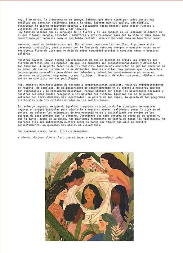 Cada año, desde hace más de un siglo, el 8 de marzo es una jornada importante: el Día Internacional de la Mujer millones de mujeres en todo el mundo salen a las calles para conmemorar la lucha histórica de las mujeres por la igualdad de derechos y la justicia social. Es una jornada festiva pero, sobre todo, es una jornada de lucha: se celebran los avances, pero se visibiliza que la igualdad real aún no está cerca y que las reivindicaciones siguen siendo necesarias.