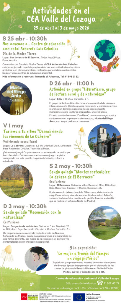 Actividades en el CEA Valle del Lozoya 25 de abril al 3 de mayo 2026